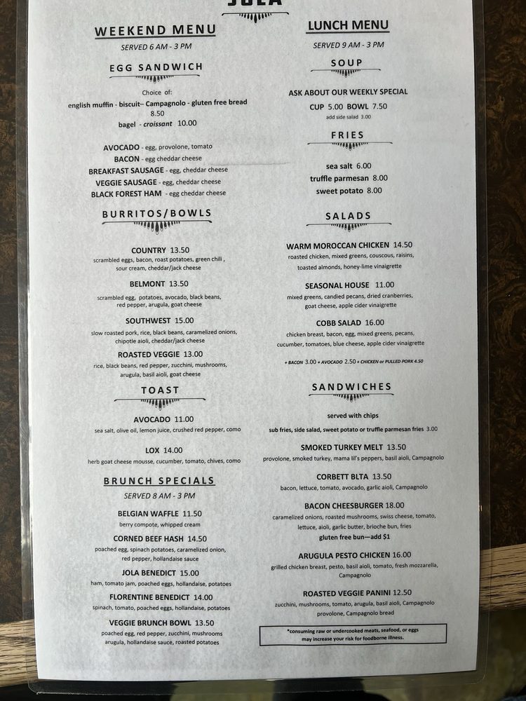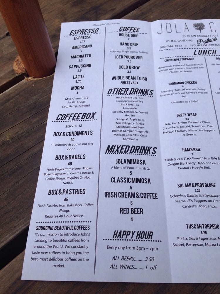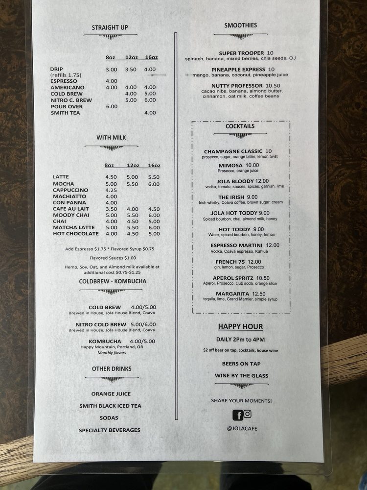 JoLa Cafe is a cozy coffee and brunch spot located in Portland, Oregon. With a diverse menu offering vegan options and a range of beverages including beer and wine, JoLa Cafe is a versatile dining destination. Customers rave about the unique brunch specials like the Chicken & Waffle Liege and the Pulled Pork Hash. The atmosphere is described as warm and inviting, perfect for relaxing or getting some work done. The cafe also offers free Wi-Fi, outdoor seating, and gender-neutral restrooms. Whether you're looking for a hearty breakfast plate, a satisfying breakfast sandwich, or a refreshing coffee, JoLa Cafe has something for everyone. Visit JoLa Cafe for a delightful dining experience that combines great food, friendly service, and a welcoming environment.